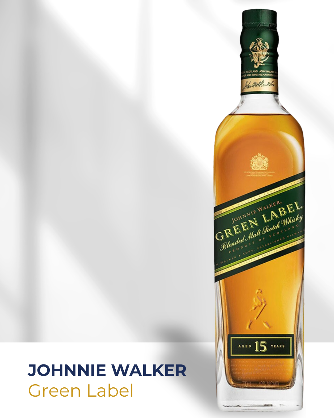 Discover Johnnie Walker Green Label 15 Years Old, a blended Scotch malt whisky that pays tribute to the richness of Scotland’s single malts. Made exclusively from malts from Speyside, Highland, Lowland and Islay, each aged for a minimum of 15 years, it offers a deep and perfectly balanced aromatic experience.